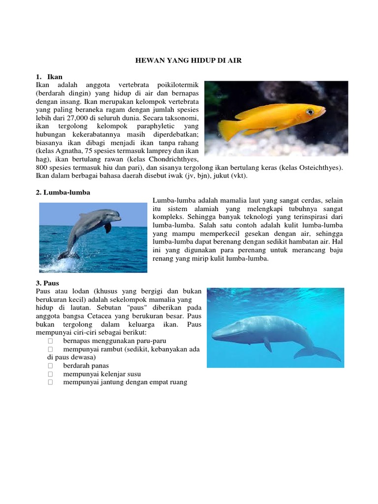 gambar beserta ciri-ciri hewan yang hidup di air - Brainly.co.id