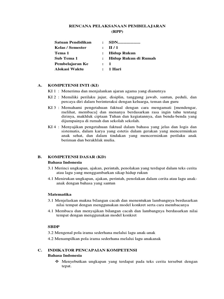 Rpp kelas 2 tema 2 hidup rukun revisi 2018