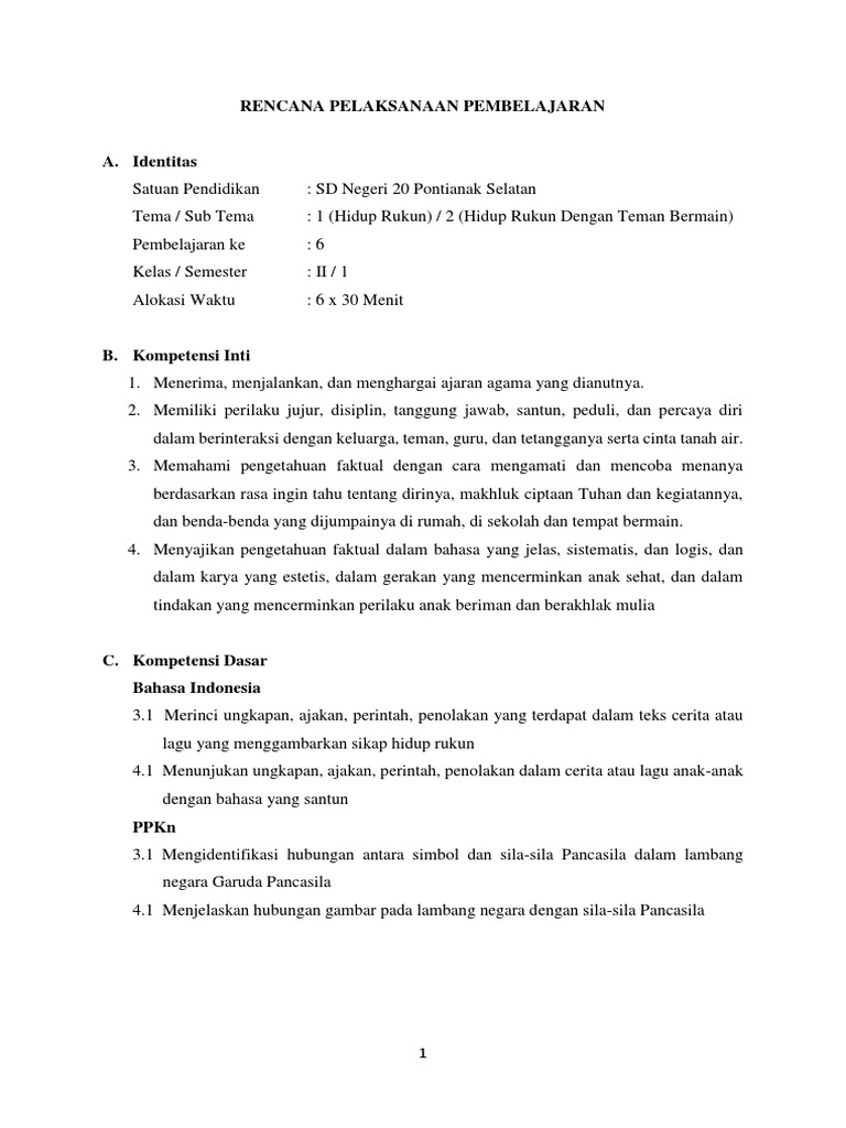 Rpp Kela II Tema 1 Sub Tema 2 Pembelajaran 6
