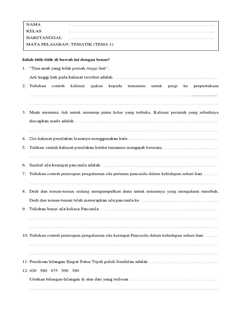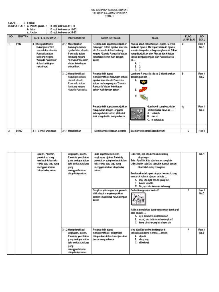Kisi-kisi dan Contoh Soal Ujian Tengah Semester Kelas 2 SD Tema 1: Hidup Rukun - Halaman 2 - Tribunnews.com Mobile