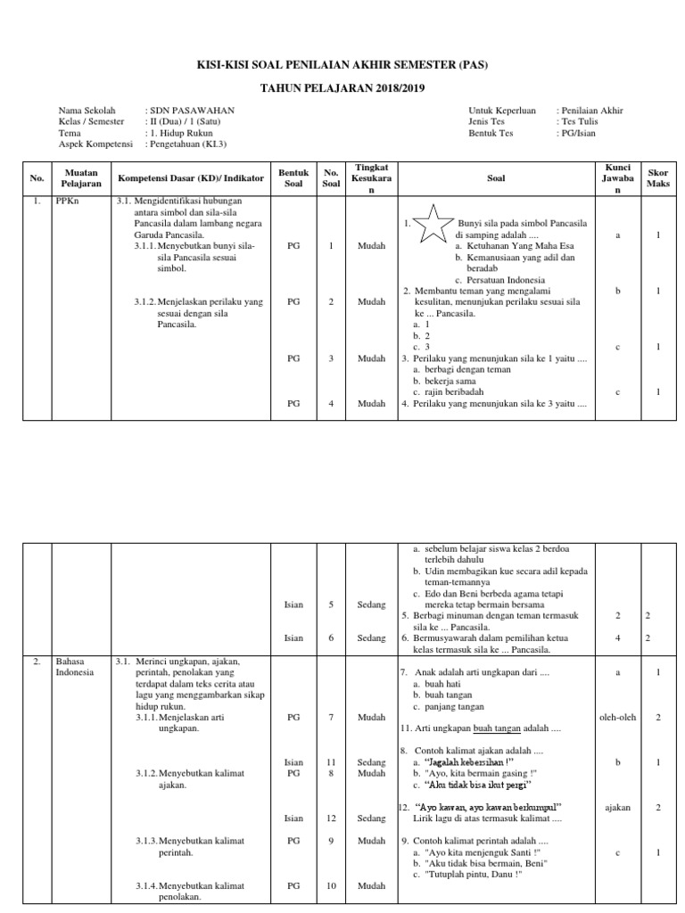 PAS KLS 2 T-1 2018 KELAS 2 SD