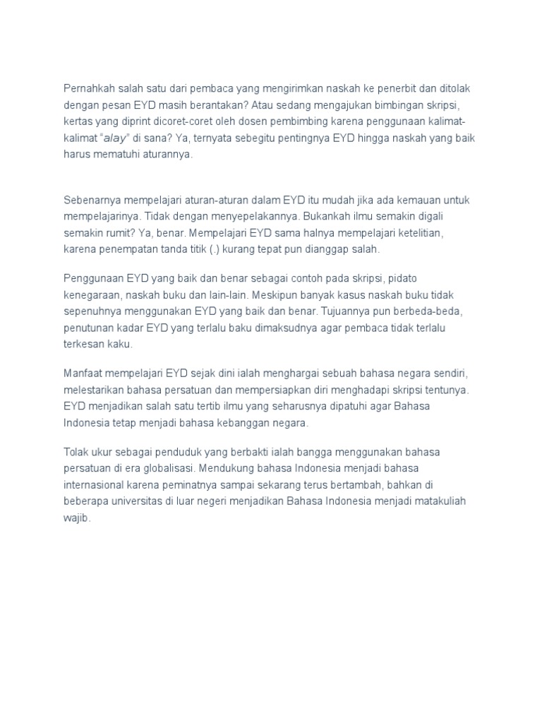 Pernahkah Salah Satu Dari Pembaca Yang Mengirimkan Naskah Ke Penerbit Dan Ditolak Dengan Pesan EYD Masih Berantakan