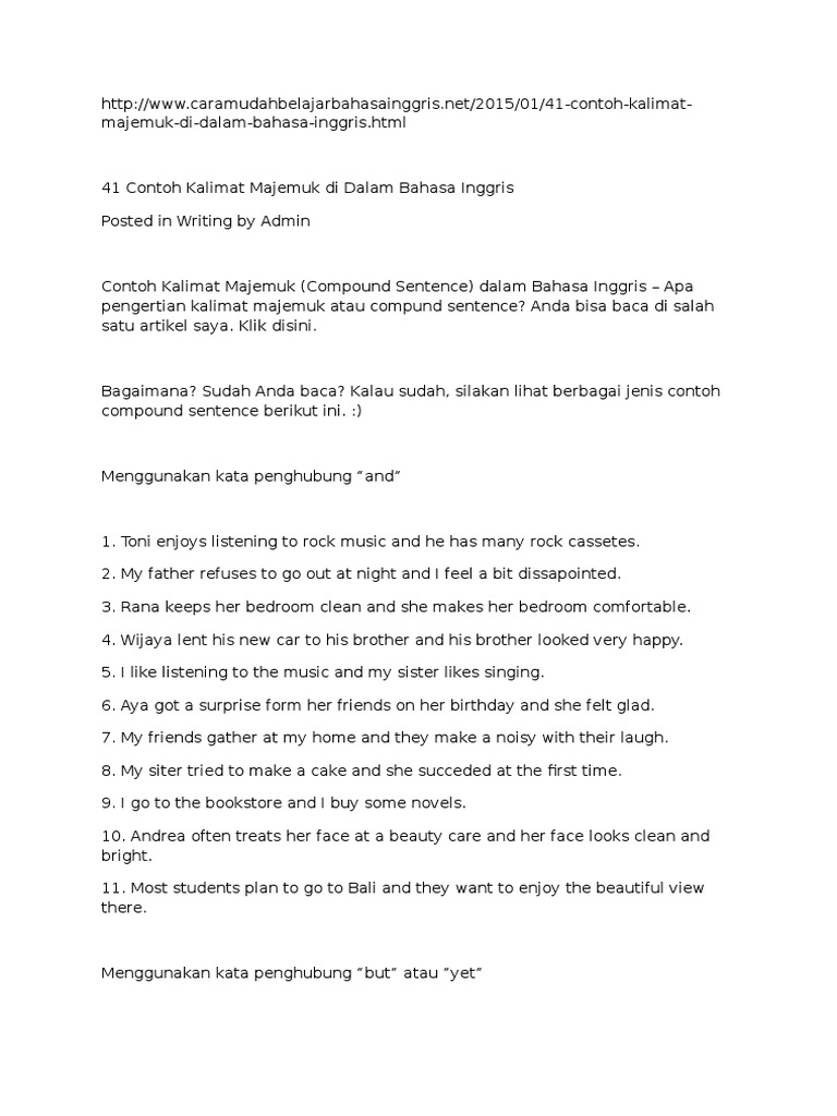 41 Contoh Kalimat Majemuk Di Dalam Bahasa Inggris