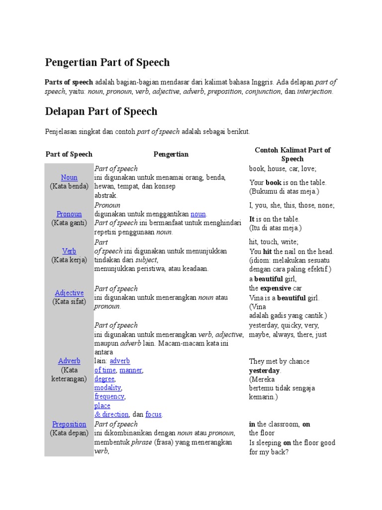 Pengertian_Part_of_Speech.docx | Bagian dari Kalimat | Kata Keterangan
