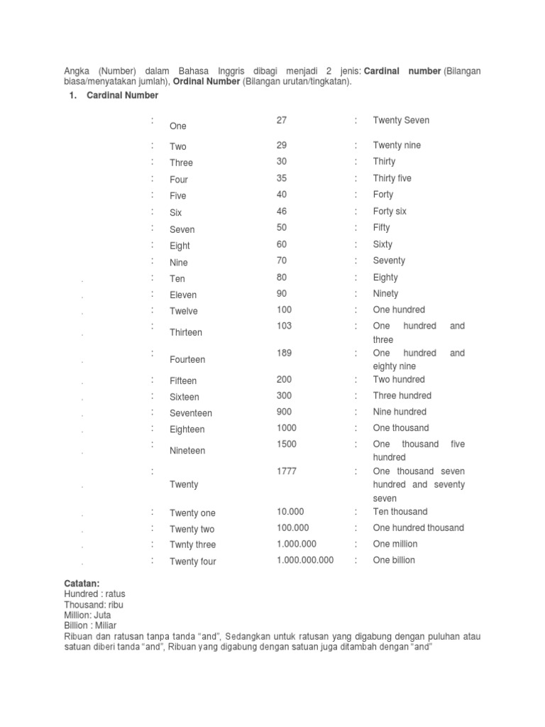 CARDINAL DAN ORDINAL NUMBER - Kampung Inggris Pare