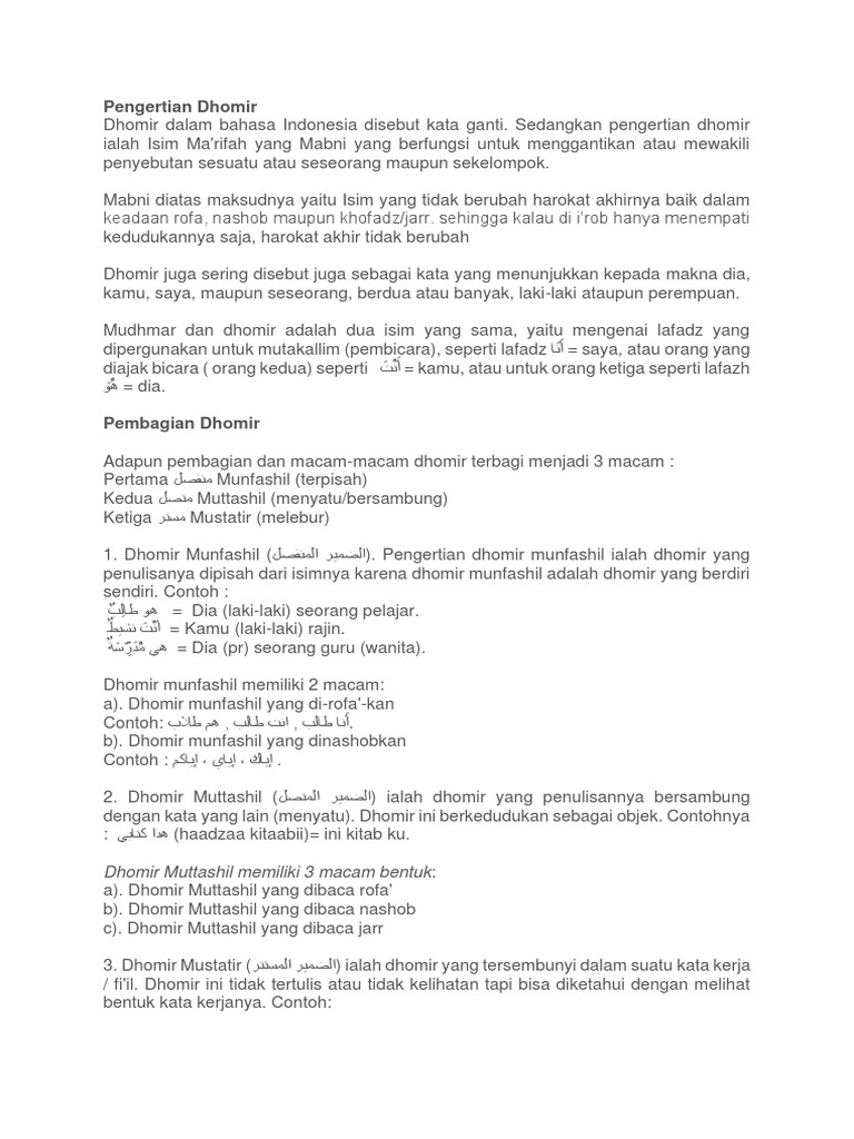 Definisi Dhomir dan Penjelasan Dhomir… - Catatan Alfiyah Ibnu Malik | Facebook