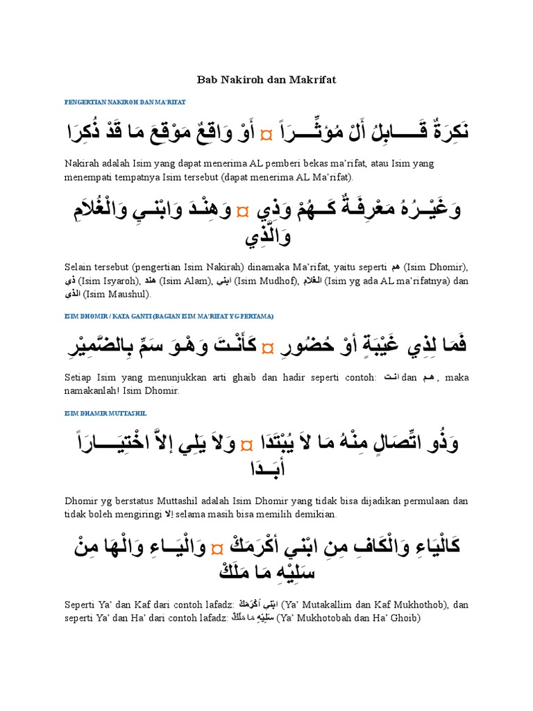 Bahasa Arab Isim Nakiroh Dan Makrifat