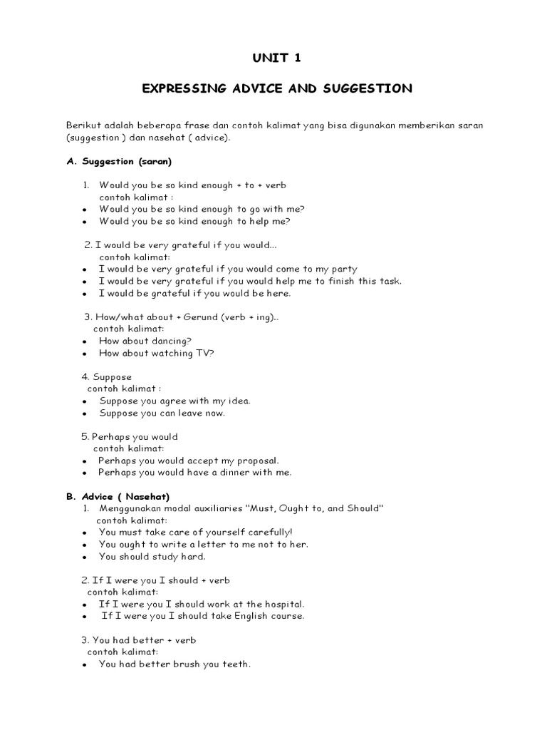 DOC) Asking and Giving Suggestion or Advice | Febri Rotama - Academia.edu