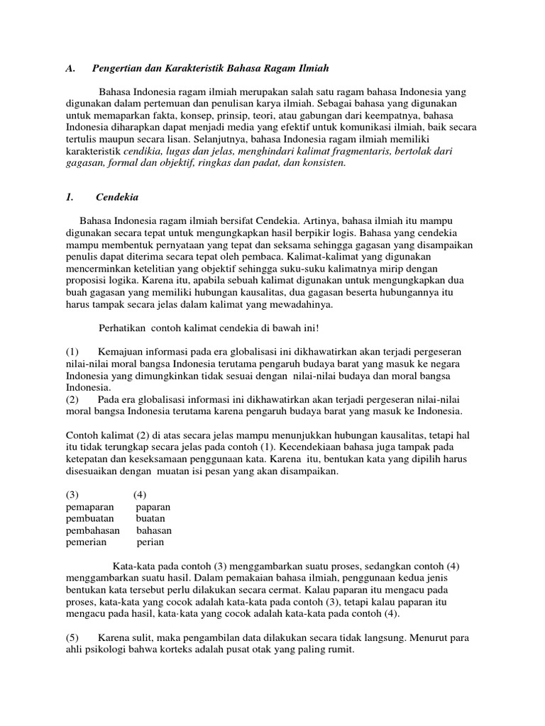 Karakteristik Bahasa Indonesia Ragam Ilmiah