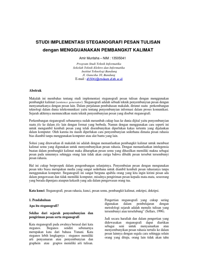 STUDI IMPLEMENTASI STEGANOGRAFI PESAN TULISAN_ dengan MENGGUANAKAN PEMBANGKIT KALIMAT
