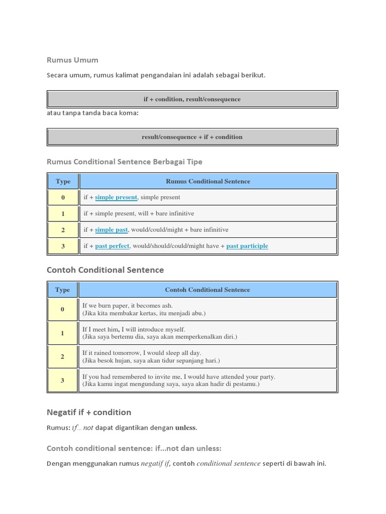 Contoh Kalimat Conditional Sentence Semua Tipe - Pinterkelas