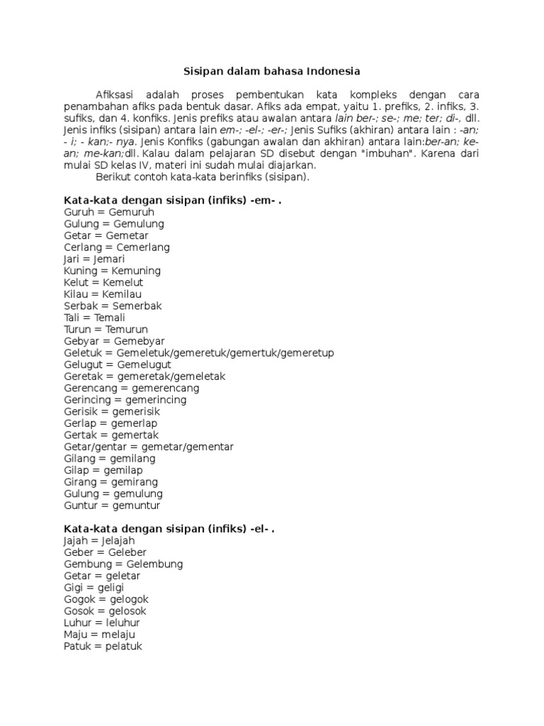 Infiks Dalam Bahasa Indonesia
