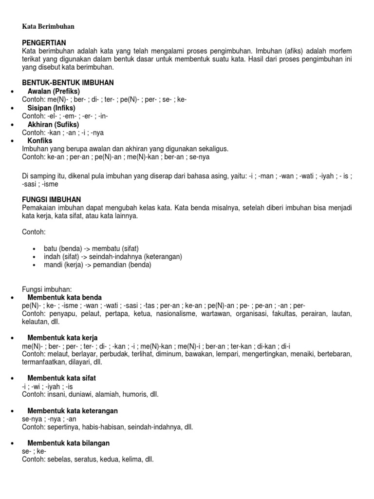 Pengertian dan Contoh Kata Berimbuhan Terlengkap - Berpendidikan.Com