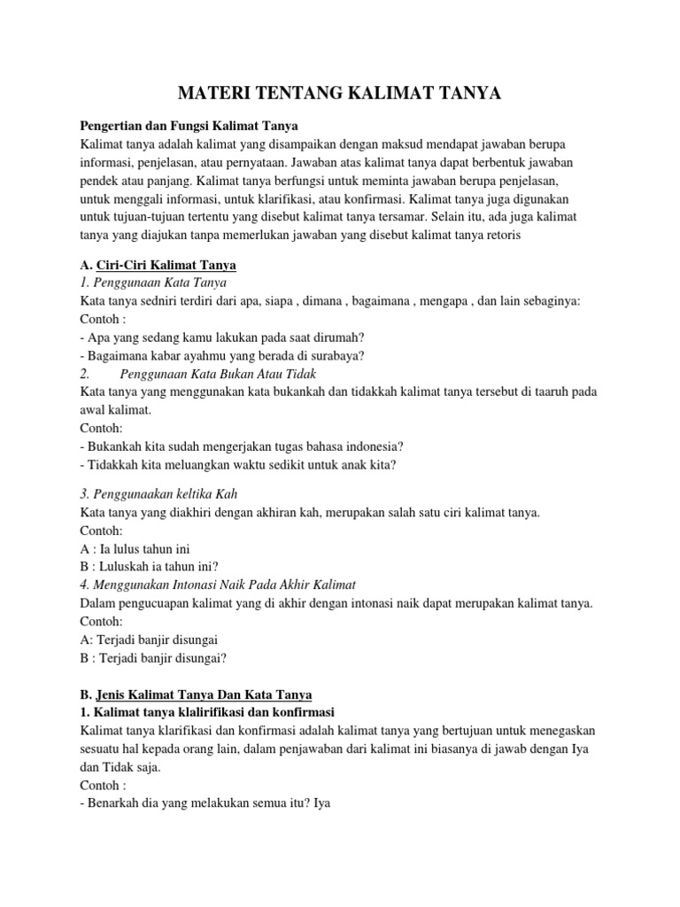 Materi Tentang Kalimat Tanya