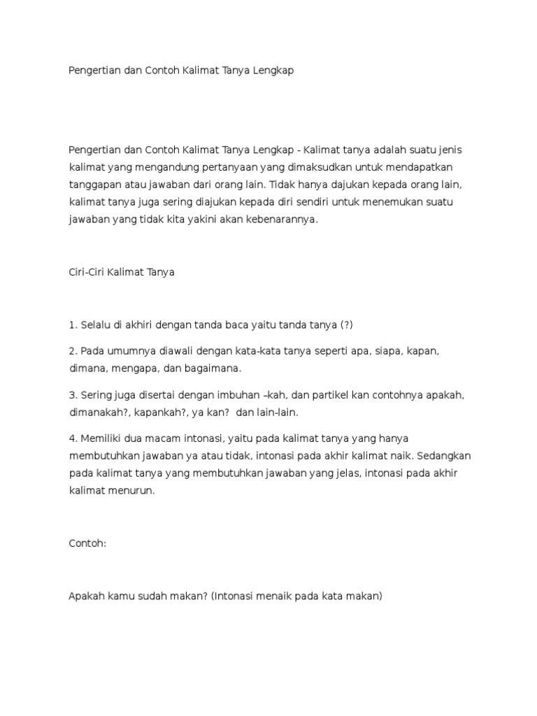 Pengertian Dan Contoh Kalimat Tanya Lengkap
