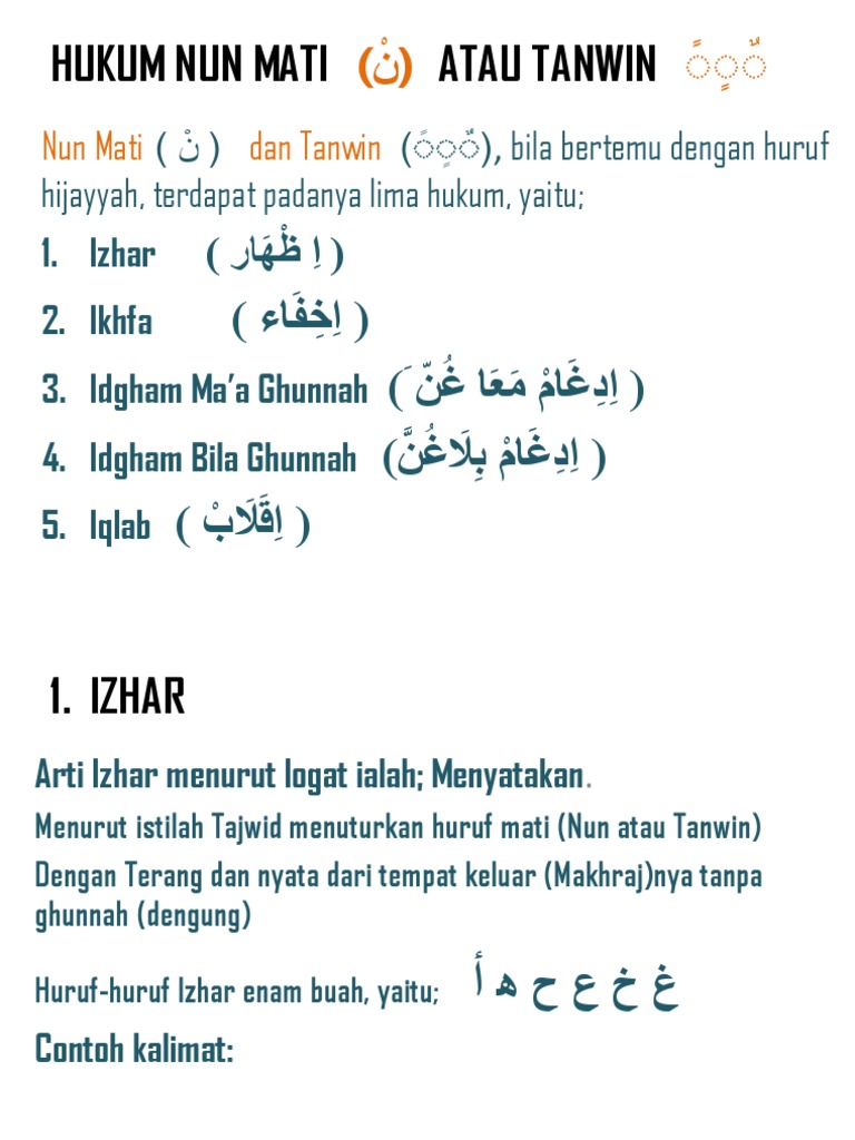 Robby Analiza: Bacaan dan Contoh Izhar, Idgham, Ikhfa, dan Iqlab (Hukum Bacaan Nun Mati dan Tanwin)
