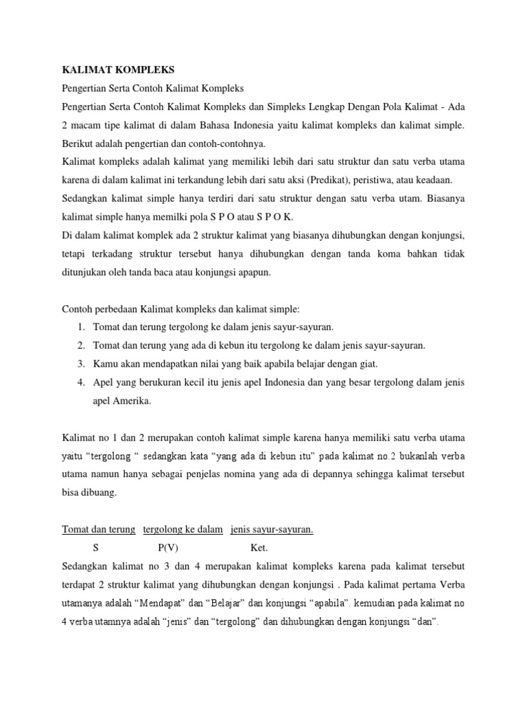 Kalimat Simpleks Dan Kompleks Beserta Contohnya