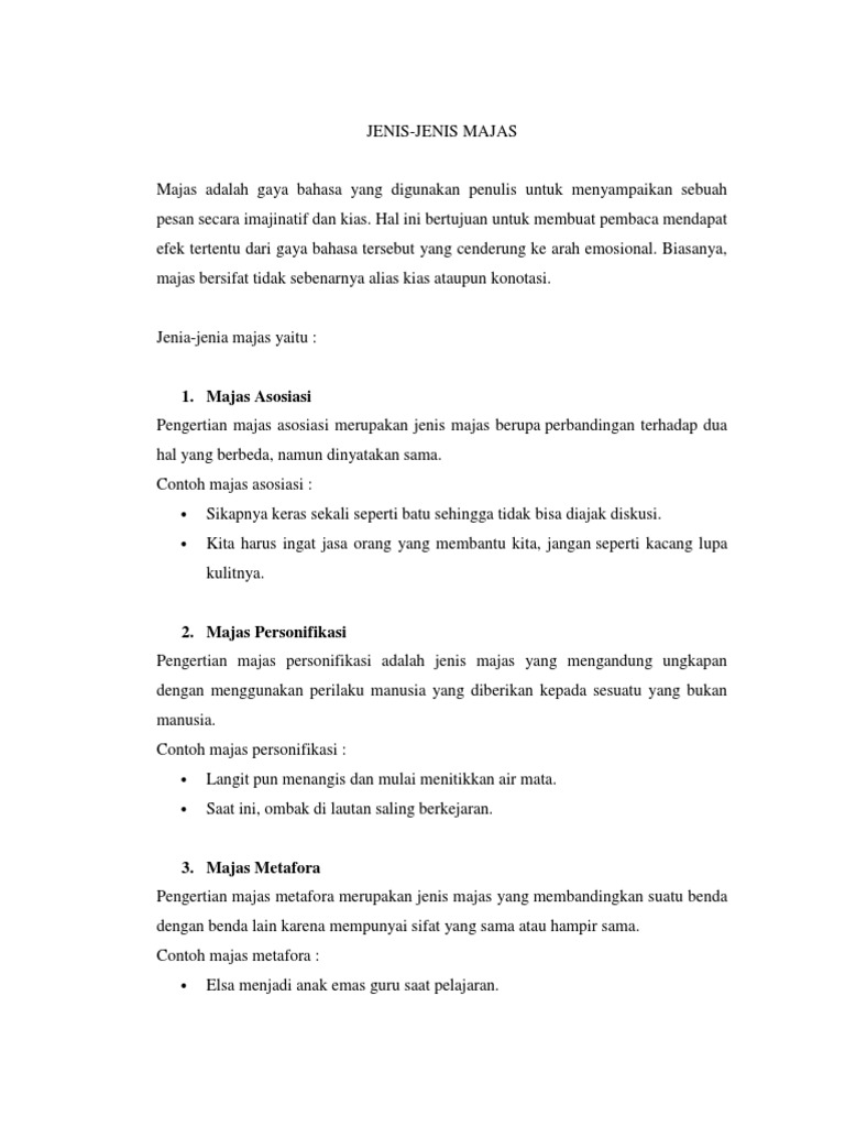 DOC) Macam-Macam Majas Beserta Contohnya | Iin Agustian - Academia.edu