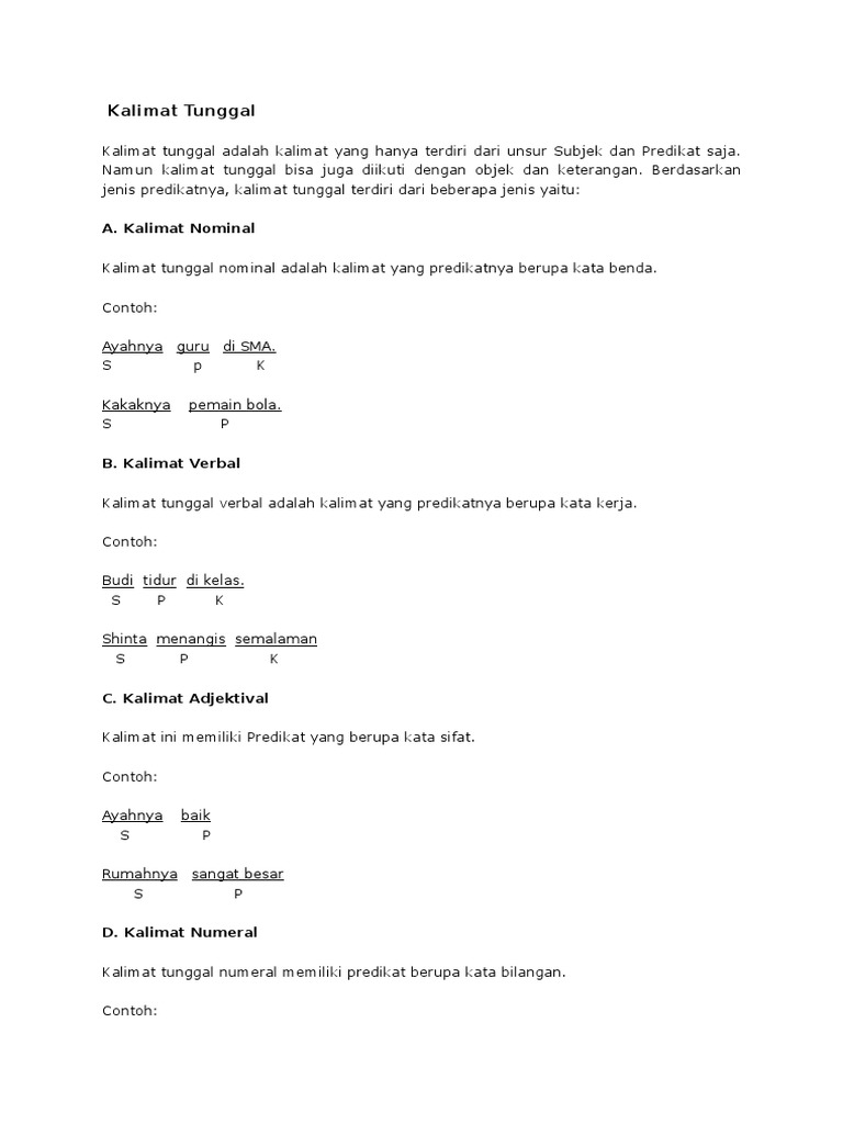 Pengertian Kalimat Tunggal , Ciri-Ciri, Jenis dan Contoh Kalimat Tunggal (Simpleks) Lengkap Pelajaran Sekolah Online