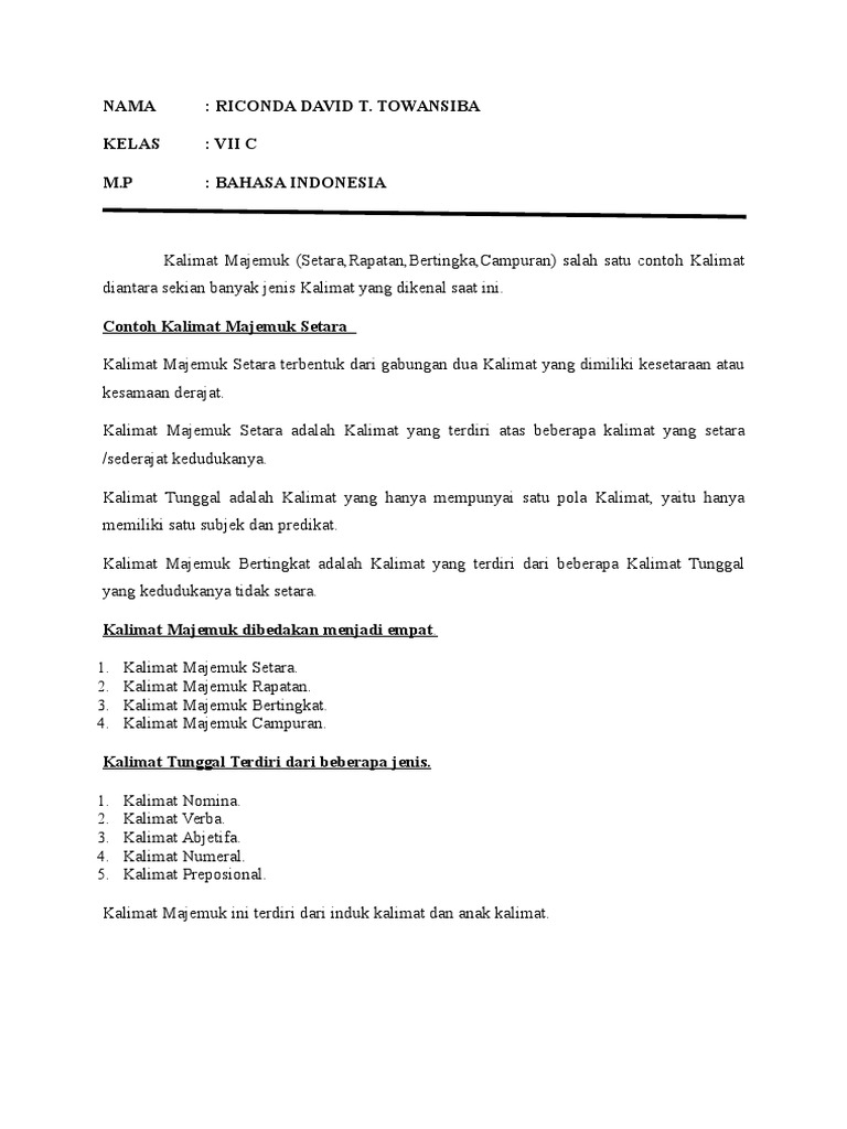 Contoh Kalimat Tunggal Dan Kalimat Majemuk Beserta Penjelasan Lengkap [vnd58vzz5wlx]