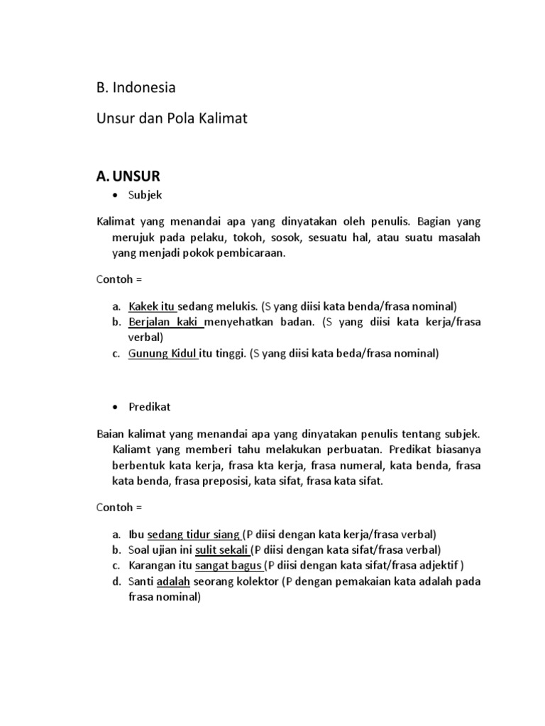 B. Indonesia Unsur dan Pola Kalimat