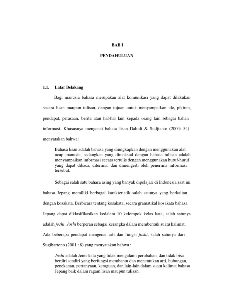 Bab 1 analisis kesalahan penggunaan partikel ga da wa pada mahasiswa jepang
