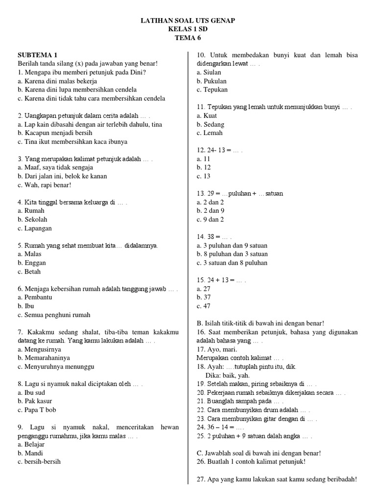 1. Soal Tematik Kelas 1 Tema 6