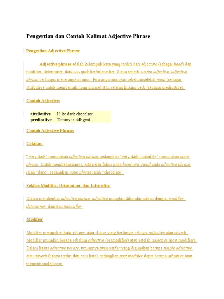 DOC) djective Phrase Pengertian Adjective Phrase | Risna Callege - Academia.edu