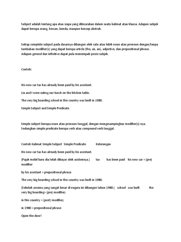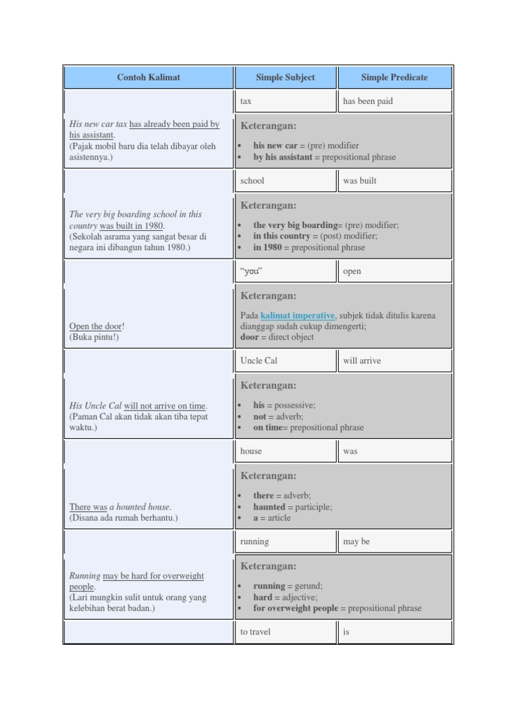 Pengertian Penggunaan dan Contoh Subject dan Predicate | Belajar Bahasa Inggris Online