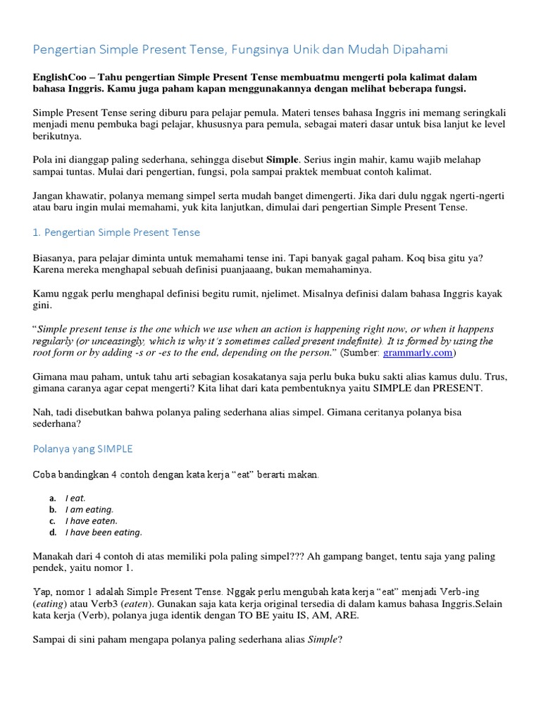 PDF) Belajar Grammar Tenses Bahasa Inggris Simple Present Tense, Rumus, Contoh Kalimat dan Fungsinya Sehari Hari | delina lena - Academia.edu