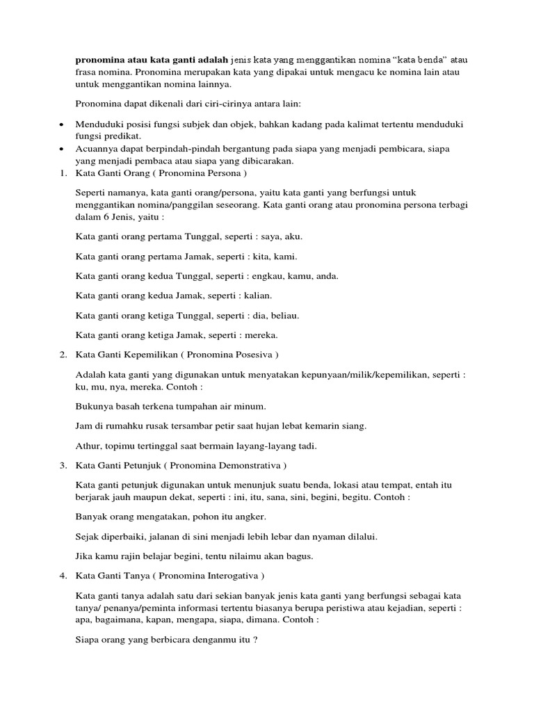 Kata Ganti: Pengertian, Ciri, Jenis-Jenis dan Contoh | dosenpintar