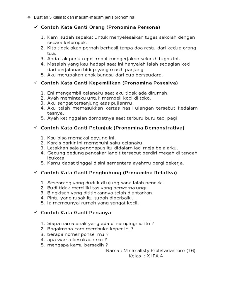Contoh Kata Ganti | Contoh Soal Dan Materi Pelajaran 7