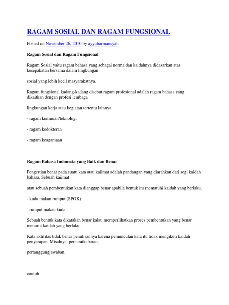 DOC) Ragam Bahasa Beserta Contohnya | Gilbert Pattipeilohy - Academia.edu