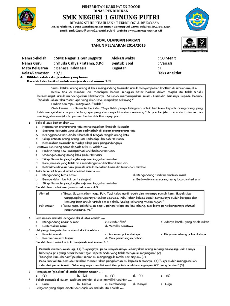 Soal UH Anekdot Kls X