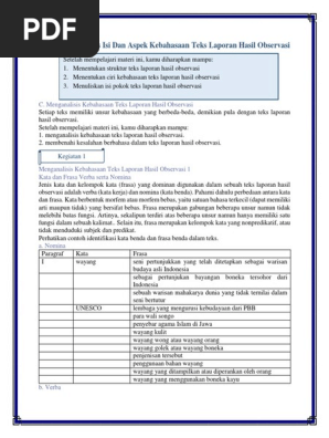 MENGANALISIS ISI, STRUKTUR, DAN ASPEK KEBAHASAAN TEKS LAPORAN HASIL OBSERVASI ~ ZUHRI INDONESIA
