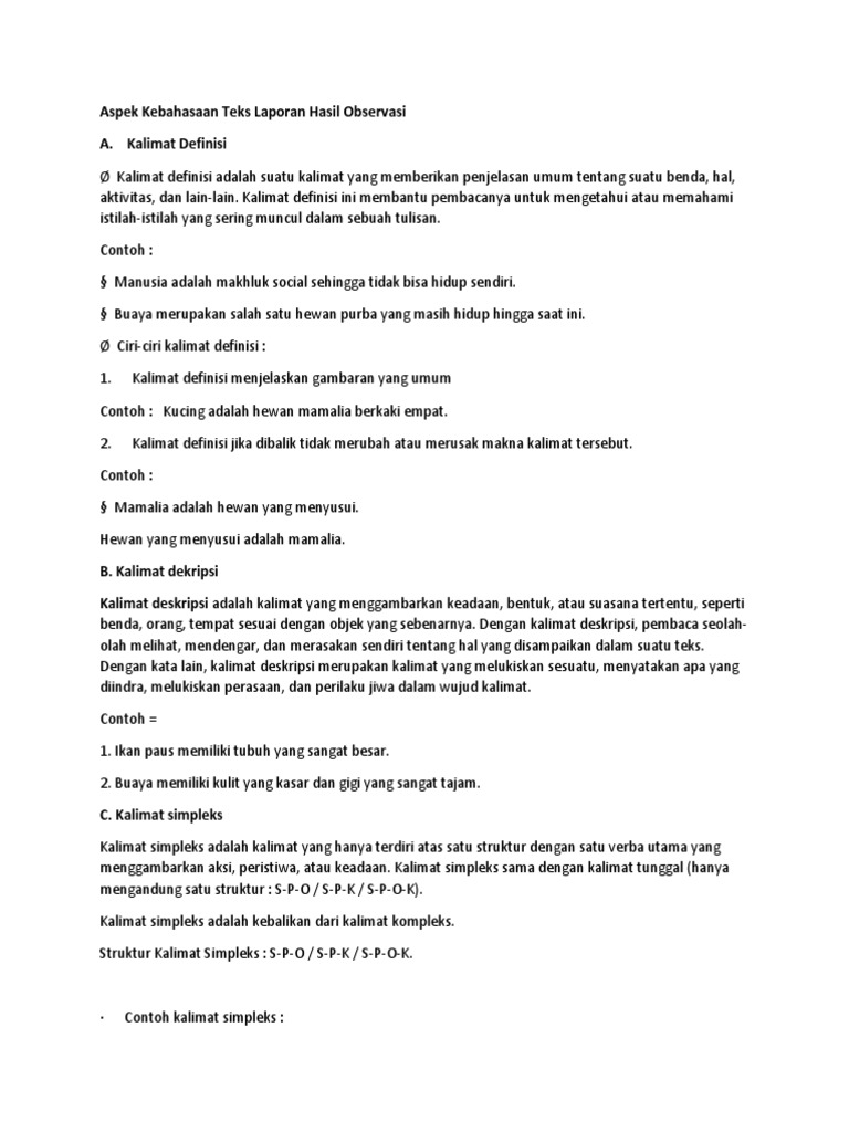 Contoh Kalimat Simpleks Dan Kompleks Dalam Teks Laporan Hasil Observasi