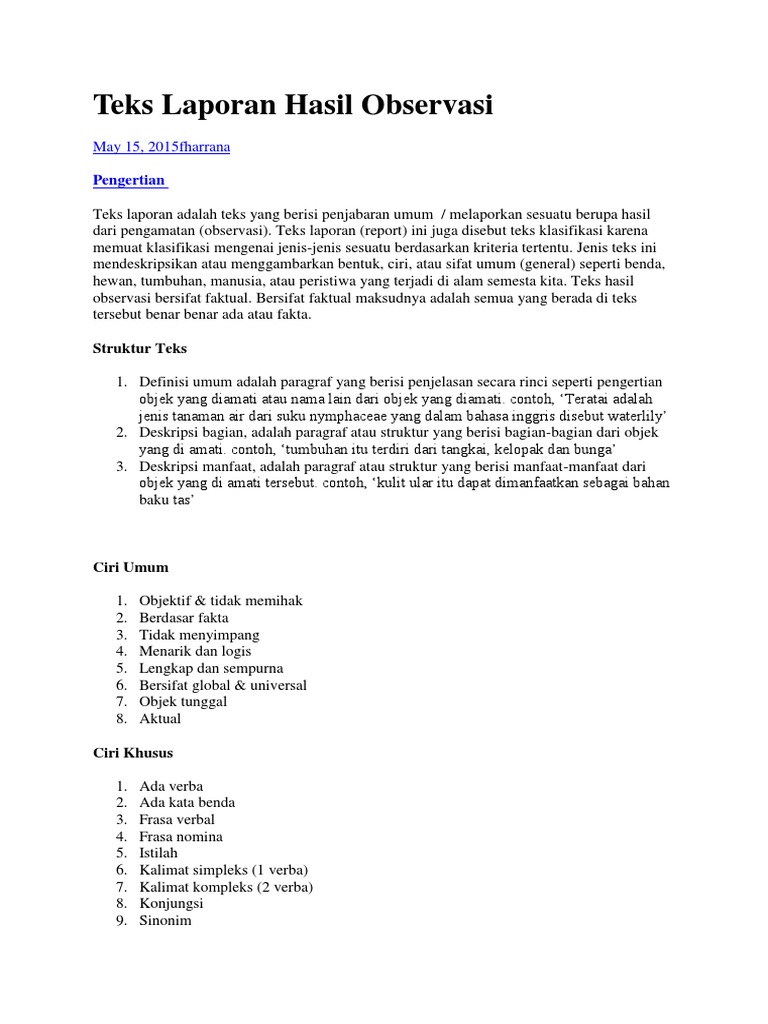 Teks Laporan Hasil Observasi