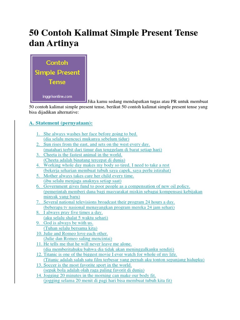 50 Contoh Kalimat Simple Present Tense Dan Artinya