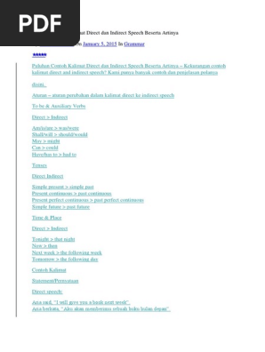 DOC) Aturan – aturan perubahan dalam kalimat direct ke indirect speech Time & Place Contoh Kalimat | Ema In-Sina - Academia.edu