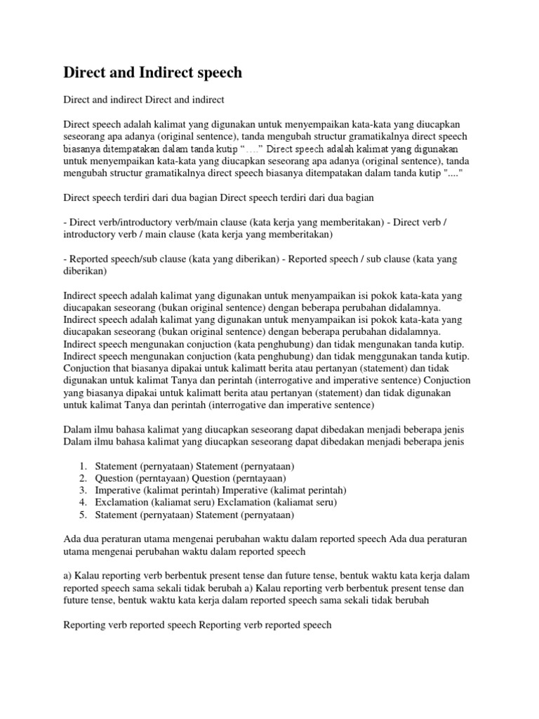 DOC) DIRECT and INDIRECT SPEECH | cahyani prastuti - Academia.edu