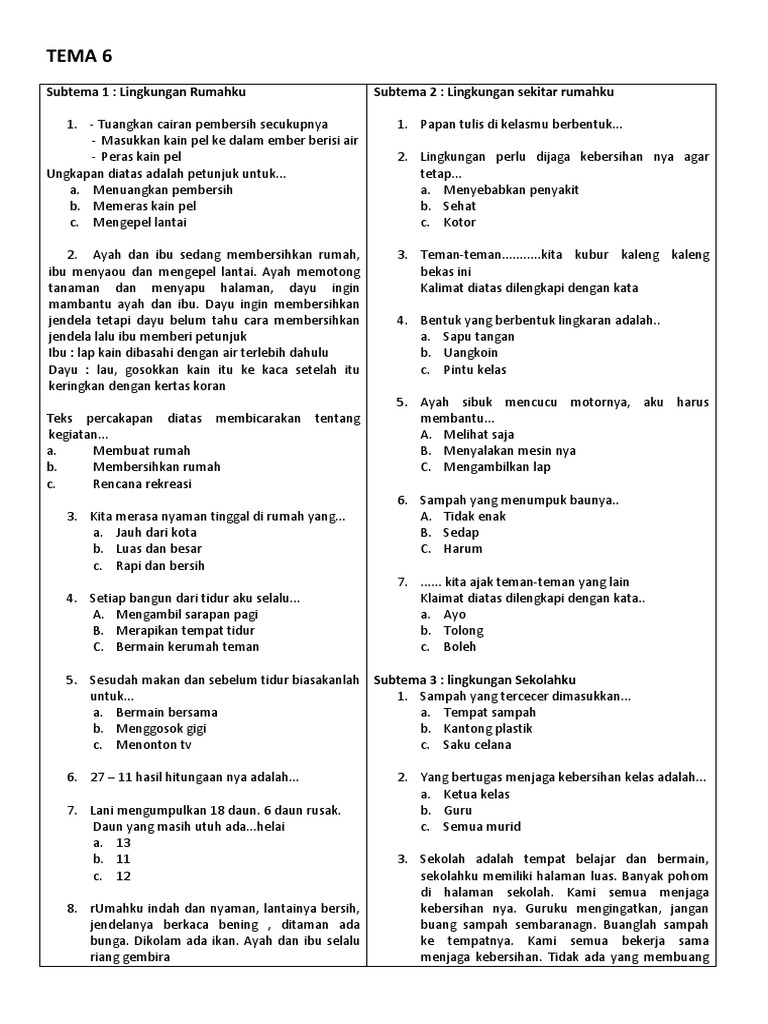 Soal Tema 6 Subtema 1