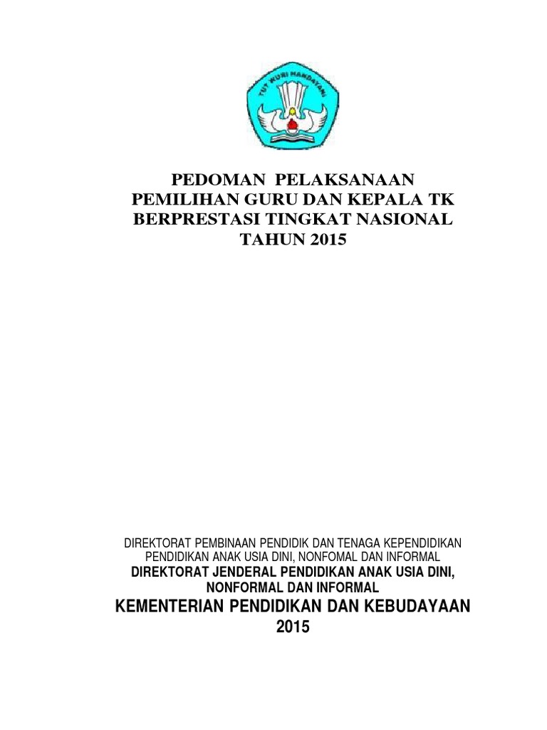 Pedoman Pemilihan Guru Dan Kepala TK Berprestasi 2015