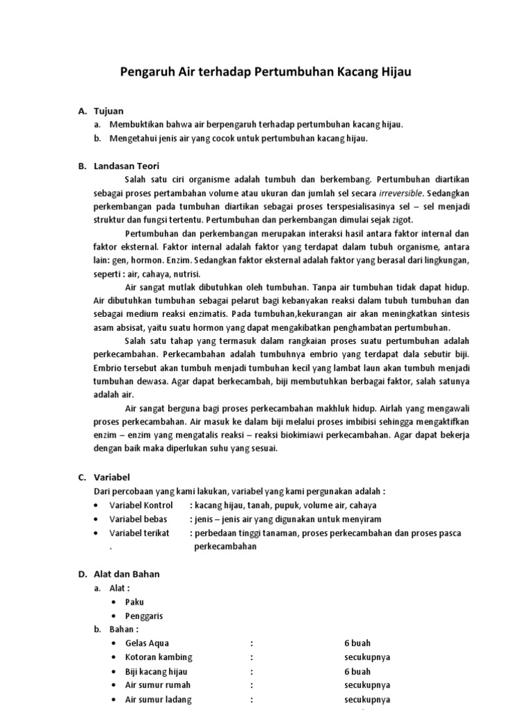 DOC) Contoh 1. Karya Ilmiah Biologi: Tumbuhan Kacang Hijau | Hizki Madriddista - Academia.edu