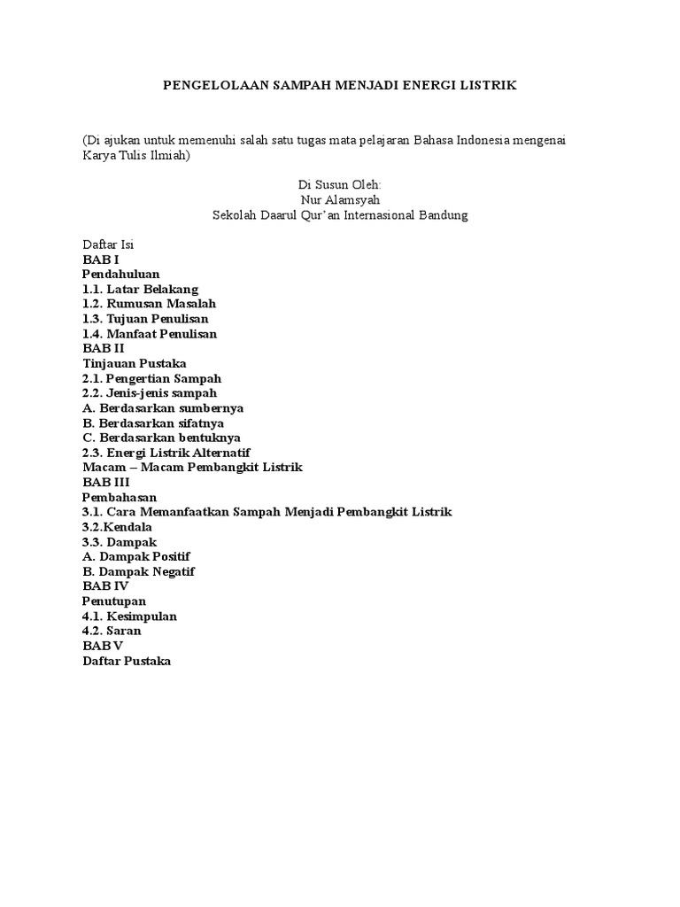 DOC) Karya Tulis Ilmiah SAMPAH DI INDONESIA Kelompok 6 : Kelas X ips 3 | Dila Manik Arfath - Academia.edu