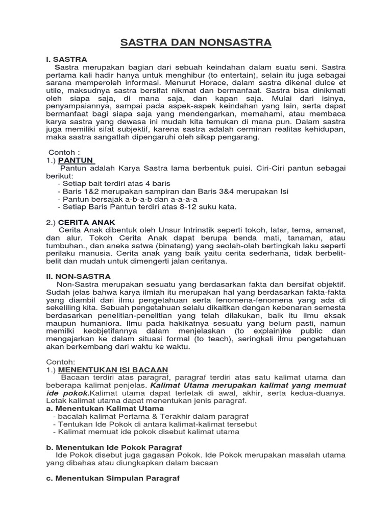 contoh teks sastra dan nonsastra