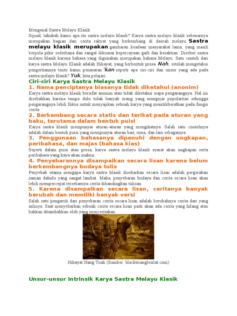 Sastra Melayu Klasik | Ruang Belajar Bahasa dan Sastra Indonesia