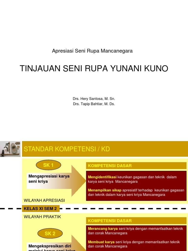 TINJAUAN SENI RUPA YUNANI KUNO - file.upi. keunikan gagasan dan teknik dalam karya seni kriya Mancanegara Menampilkan sikap apresiatif terhadap keunikan gagasan dan teknik dalam karya seni