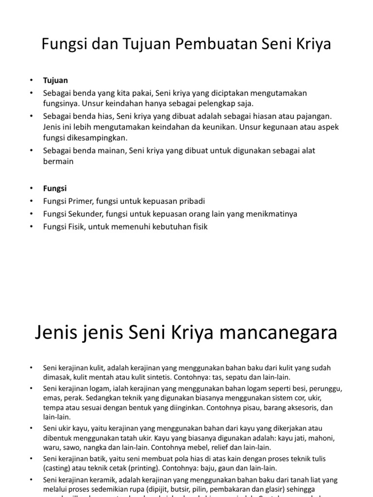 Fungsi Dan Tujuan Pembuatan Seni Kriya
