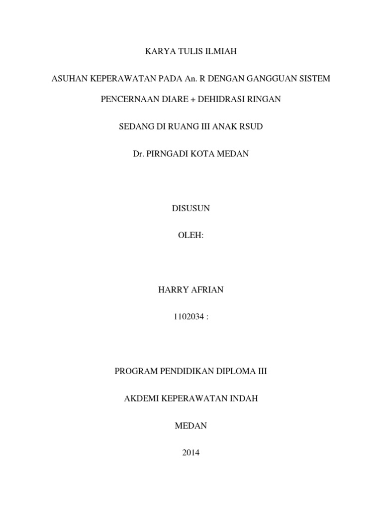 PDF) ASUHAN KEPERAWATAN PADA An. R DENGAN GANGGUAN SISTEM PENCERNAAN : GASTROENTERITIS DI RUANG MINA RS PKU MUHAMMADIYAH SURAKARTA NASKAH PUBLIKASI ILMIAH | anisa mohamad - Academia.edu