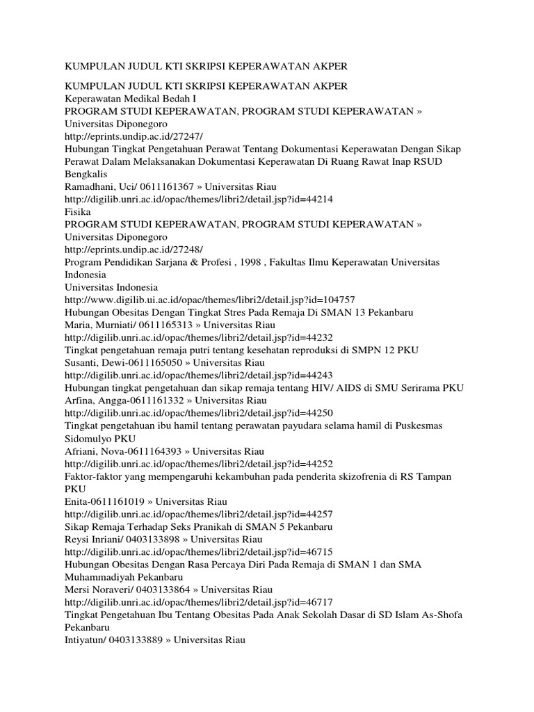 Judul Skripsi Keperawatan Medikal Bedah 2018 - Ide Judul Skripsi Universitas